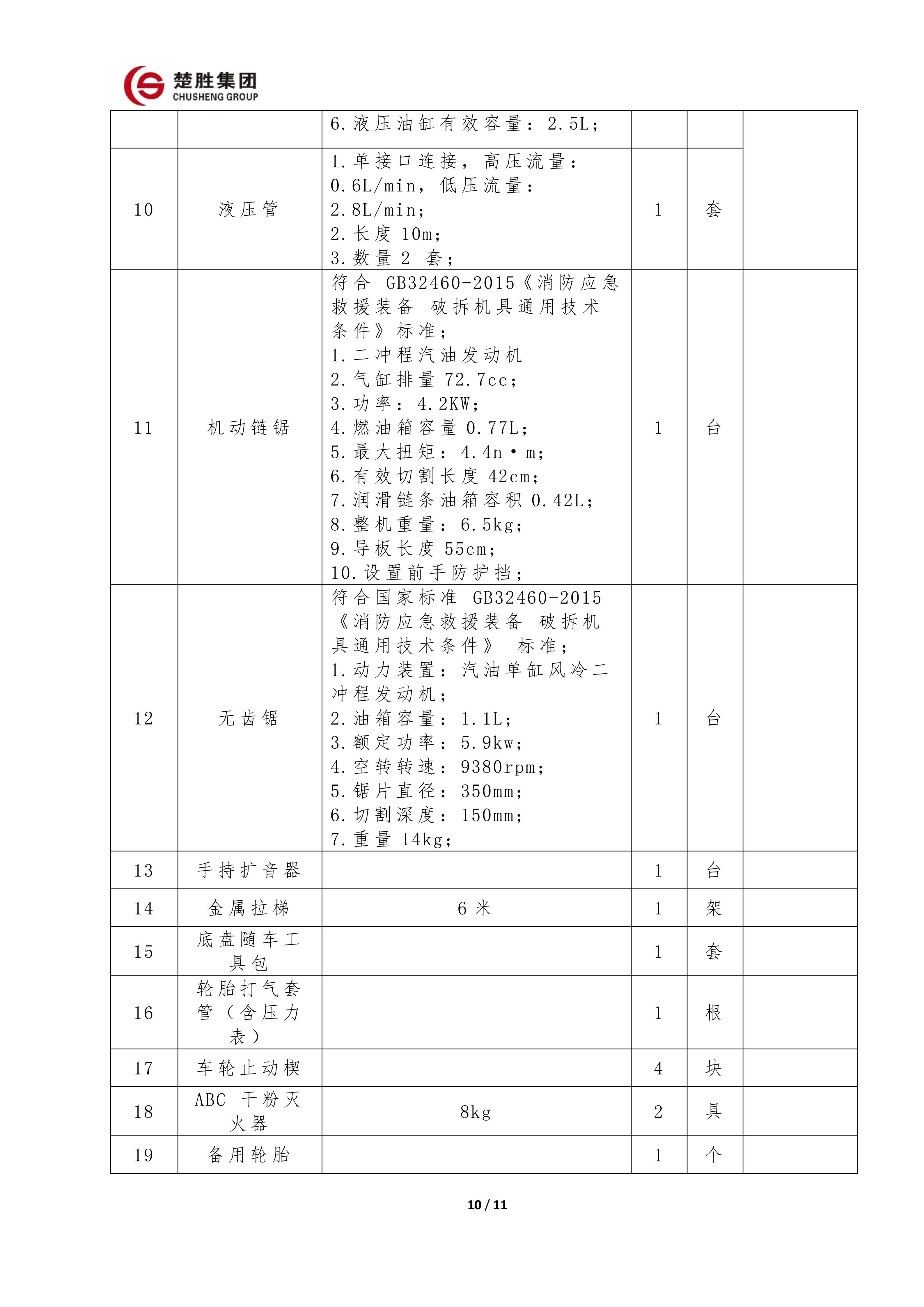 楚勝牌 CSC5030TXFQC10/CC6 型器材消防車